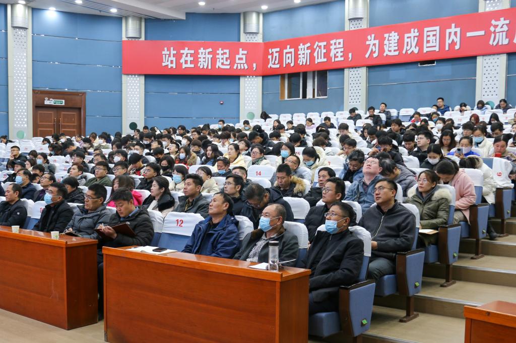 12月11日上午,枣庄市委书记张宏伟莅临我校薛城校区,为师生讲授思政课,校党委书记高峰主持。枣庄市委教育工委常务副书记、市教育局党组书记、局长王光明,枣庄市教育局党组成员、副局长朱卫,校领导李目海、路绪剑、丰雷、张昌林、林勇出席报告会。薛城校区处科级以上干部及师生代表在崇德楼报告厅聆听报告,市中校区处科级以上干部及师生代表在综合楼报告厅分会场以视频直播形式收听收看。