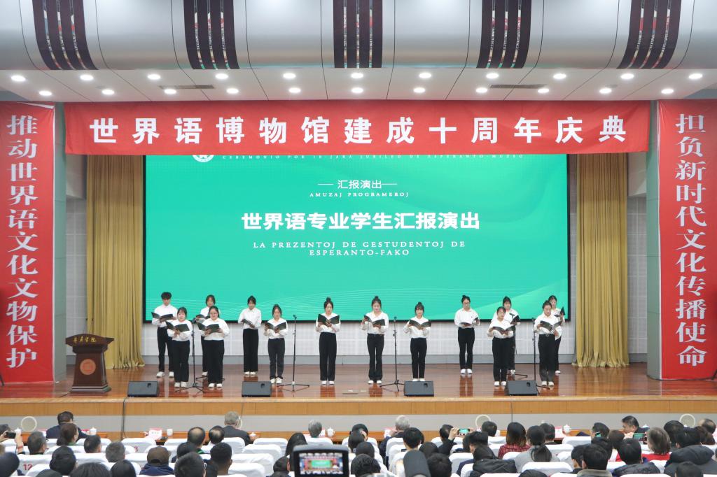纪念活动开始前,与会嘉宾观看了世界语博物馆建成十周年纪录片。纪念活动之后,与会嘉宾观看了师生教学成果汇报演出,参观了世界语博物馆建成十周年成果展和世界语博物馆。