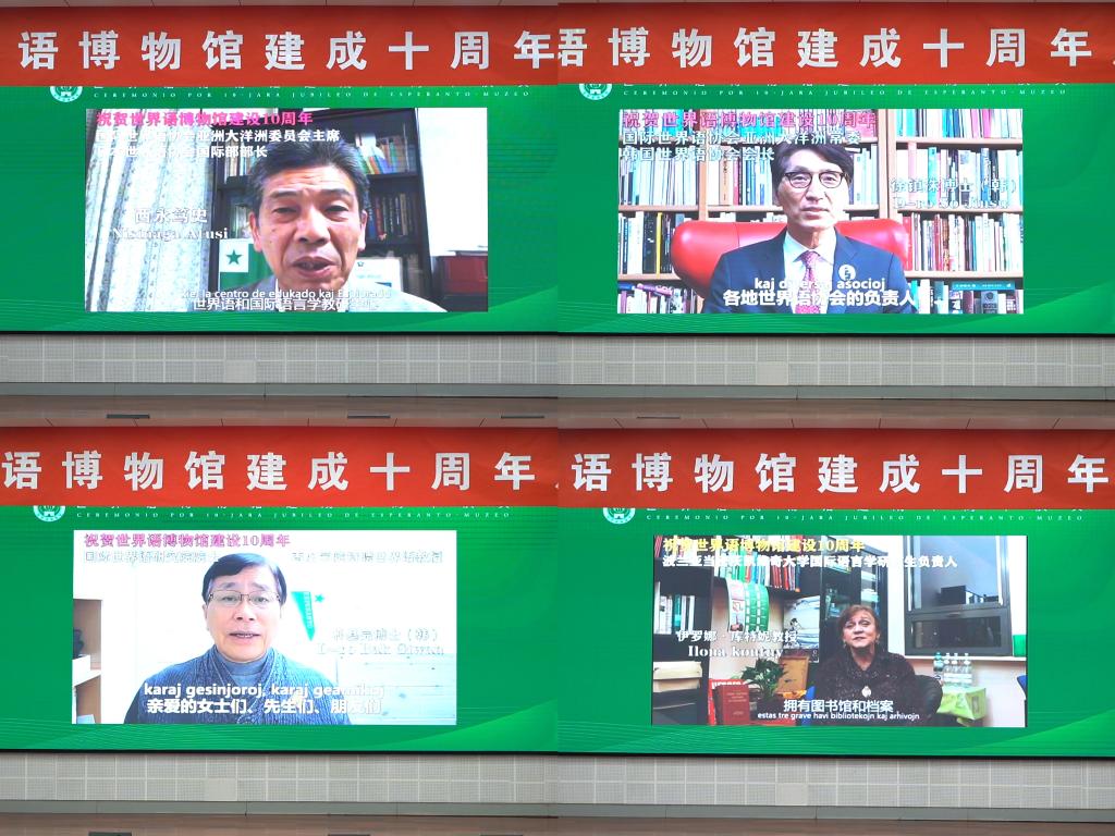 国际世界语协会亚太委员会主席西永笃史,国际世协常委、韩国世界语协会会长徐镇洙教授,国际世界语研究院院士朴基完博士,波兰亚当•密兹凯维奇大学伊洛娜博士向庆典活动发来视频表示祝贺。
