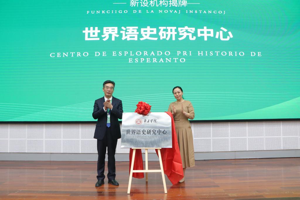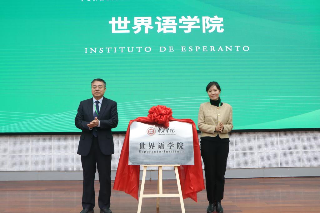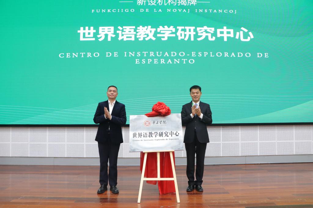 陈文戈、左文为“世界语教学研究中心”揭牌。