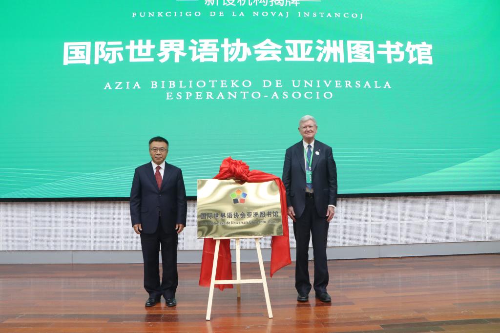邓肯、刘大为为“国际世界语协会亚洲图书馆”揭牌。