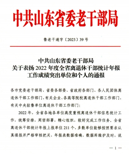 近日,省委老干部局发出通报,对全省2022年度离退休干部统计年报工作成绩突出单位和个人进行表彰,我校被评为全优单位。这是我校连续两年被评为全省离退休干部统计年报全优单位。