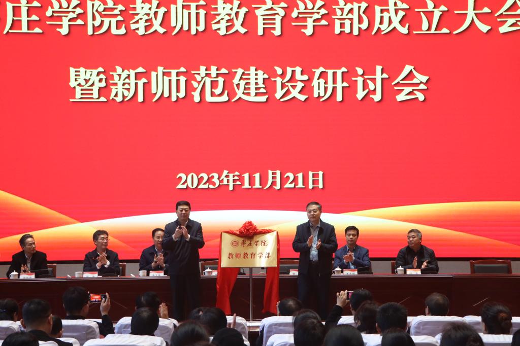 高峰代表学校对出席会议的领导、专家学者表示诚挚欢迎和衷心感谢。他在致辞中指出,近年来学校聚焦新时代教师核心能力培养,以师范专业认证为抓手,优化师范类专业人才培养体系,积极实施师德养成行动、职业能力提升行动、教育服务拓展行动,师范专业人才培养卓有成效。学校与枣庄市教育局共建教师教育“一学部四中心”,整合了学校教育学相关学科平台和全市优质资源,是推动学校当前和未来发展的改革之举,也是深化校地融合、强化服务地方、助推枣庄市基础教育高质量发展的创新之举。希望以此次学部的成立为契机,进一步挖掘学科优势资源,扩大改革成果,推进教师教育职前培养与职后培训一体化,为枣庄市基础教育输送更多优秀师资,用高质量发展成果回报社会期待,实现学校教师教育和枣庄基础教育发展的“双丰收”,为服务地方经济社会发展做出应有贡献。