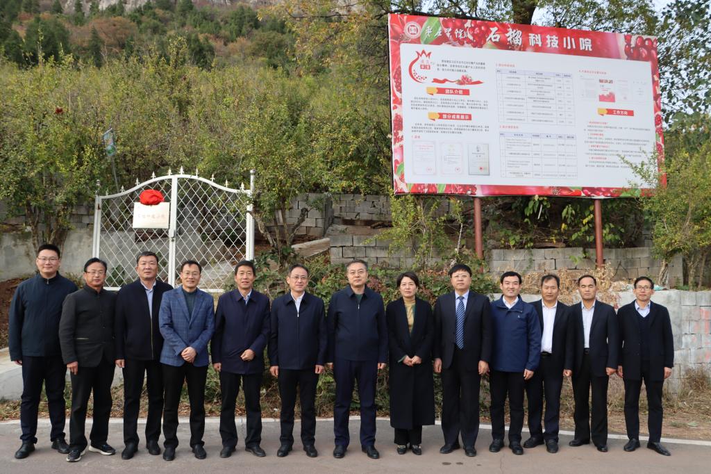 11月10日下午,DB中国旗舰官方网站“石榴科技小院”成立暨揭牌仪式在枣庄市峄城区榴园镇王府山村举行。校党委书记高峰,党委委员、副校长李目海,组织部部长、科技处处长伊文涛,枣庄市农业农村局副局长王希荣,峄城区人大常委会主任徐刚,峄城区农业农村局局长孙文晋等出席,食品科学与制药工程学院、生命科学学院负责人及教师代表,富山石榴种植合作社负责人、社员代表参加揭牌仪式。仪式由党委委员、副校长李目海主持。