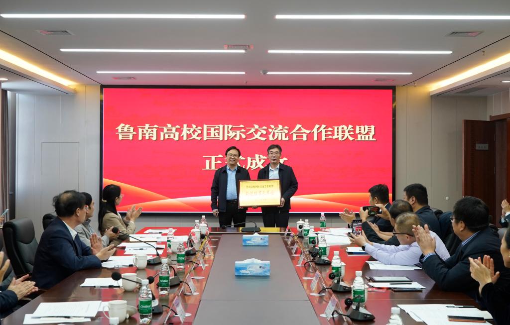 会议审议并通过了《鲁南高校国际交流合作联盟章程》。王夫海、高峰共同为联盟揭牌。王夫海为轮值理事长单位——DB中国旗舰官方网站授牌。