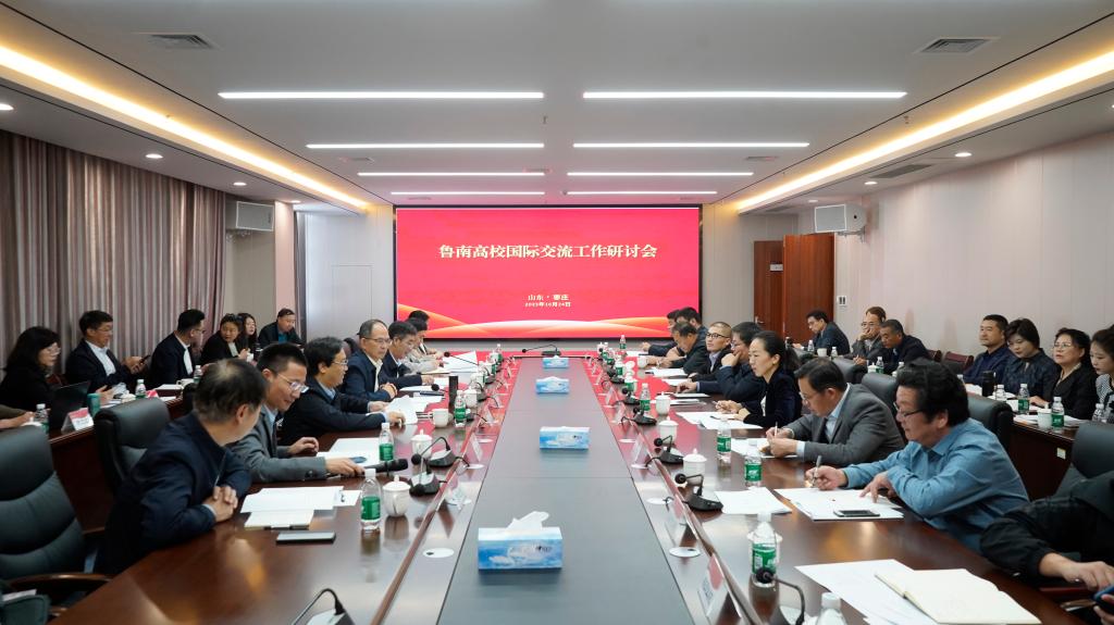 10月24日上午,鲁南地区13所高校共同发起筹建的“鲁南高校国际交流合作联盟成立大会暨鲁南高校国际化工作研讨会”在我校薛城校区成功举办。山东省教育厅国际交流与合作处处长王夫海,山东省教育国际交流协会副会长刘永波,山东省教育国际交流协会秘书长、山东师范大学国际交流与合作处处长周连勇,上海交通大学德国中心副主任唐明,中共枣庄市委外事工作委员会办公室副主任李林,山东省教育国际交流协会副秘书长王剑波、栾凤池、宋文红、周莉,DB中国旗舰官方网站党委书记高峰,校党委副书记、校长李文喜,校党委委员、副校长安涛出席会议。鲁南13所高校参会代表,DB中国旗舰官方网站相关职能部门、二级学院负责人参加会议。