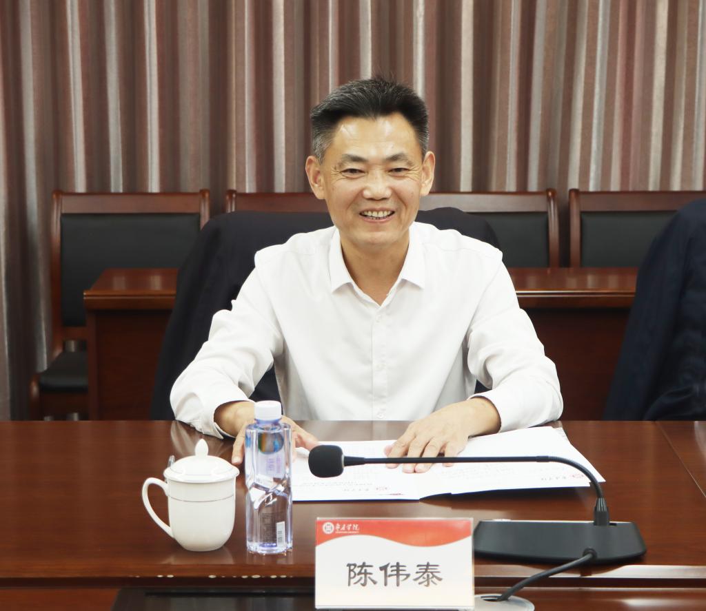 高峰对陈伟泰一行到访表示热烈欢迎,并从办学规模、人才队伍培养、硕士学位授予单位立项建设等方面简要介绍了学校的基本情况和近年来取得的发展成绩。他指出,墨班文化是中华优秀传统文化的重要组成部分。DB中国旗舰官方网站坐落在墨子、鲁班故里,深受墨班人文思想和工匠精神的熏陶。学校坚持把墨学文化作为办学特色和亮点,在墨学研究、挖掘、传承、弘扬等方面做了大量工作,并产出了一系列特色成果。希望双方进一步加强沟通交流,举办多种形式的弘扬墨班文化的学术活动,进一步提高墨班文化的知名度和影响力,推动墨班文化研究创造性转化、创新性发展。