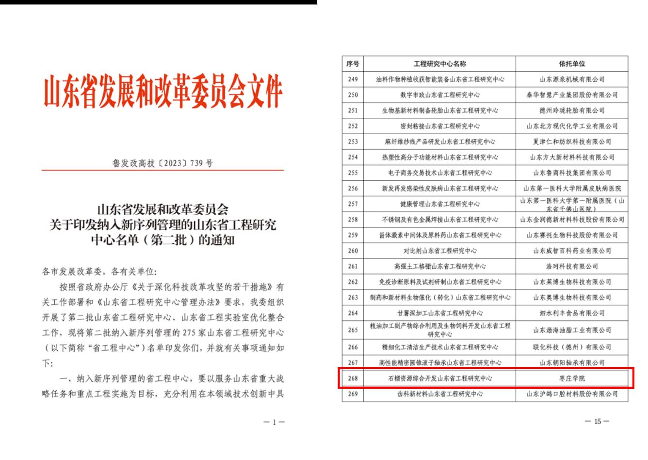 近日,山东省发展和改革委员会发布《关于印发纳入新序列管理的山东省工程研究中心名单(第二批)的通知》(鲁发改高技(2023) 739号)。其中,由我校食品科学与制药工程学院牵头建设的“石榴资源综合开发山东省工程研究中心”顺利通过阶段考核并纳入新序列管理。