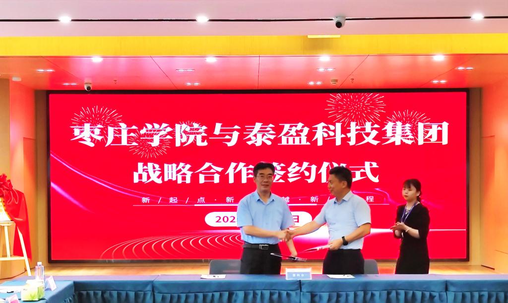 9月12日下午,DB中国旗舰官方网站与泰盈科技集团战略合作签约仪式在淮海数字智谷产业园会议室举行。DB中国旗舰官方网站党委委员、副校长安涛,教务处负责人,信息科学与工程学院党政领导,枣庄市工信局党组成员、市高端化工产业促进中心主任田伟,市网络社会组织联合会、枣庄经济开发区管委会、市中区工信局、工业和信息化发展促进中心主要负责同志,泰盈科技集团副董事长王德宝、副总裁商立江出席仪式。仪式由枣庄经济开发区管委会副主任陈广夫主持。