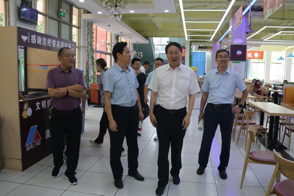 为提升新学期我校饮食服务保障工作水平,9月4日上午,校党委副书记、校长李文喜到市中校区食堂进行检查指导,学生工作处及后勤服务处负责人陪同检查。