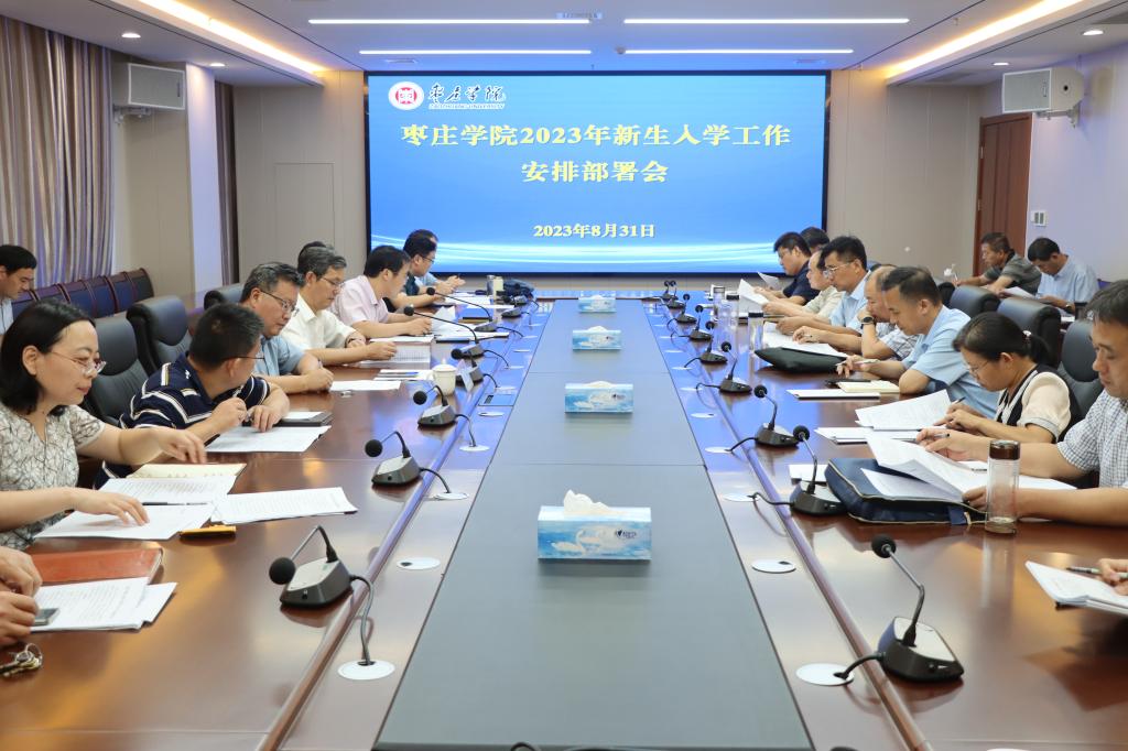 8月31日下午,我校在薛城校区明理楼五楼会议室召开2023年新生入学工作安排部署会议。校党委委员、副校长丰雷出席会议并讲话,相关部门负责人及各学院党总支书记参加会议。会议由学生工作处处长王维忠主持。