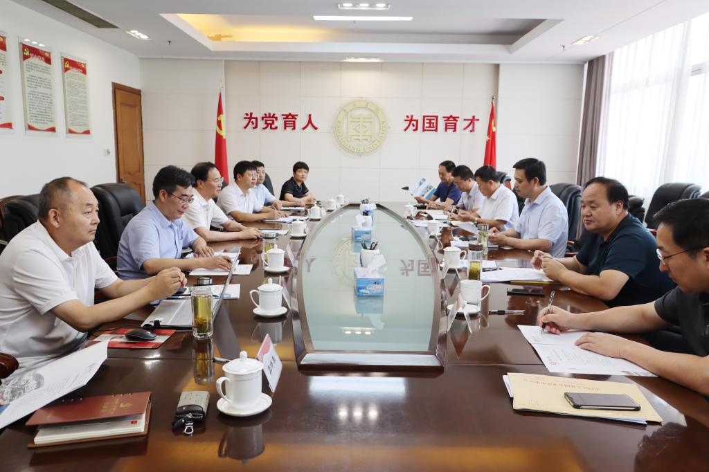 8月17日上午,我校在市中校区综合楼八楼会议室召开校地合作推进会。校党委副书记、校长李文喜,党委委员、副校长李目海,党委委员、副校长安涛出席会议。枣庄市教育局党组书记、局长王光明,市教育局党组成员、总督学孙斌,山东煤炭卫校党委书记、校长董军,安侨集团执行总裁刘宝峰,市教育局相关科室负责人,我校办公室、教务处、科技处、健康工程技术研究院负责人参加会议。