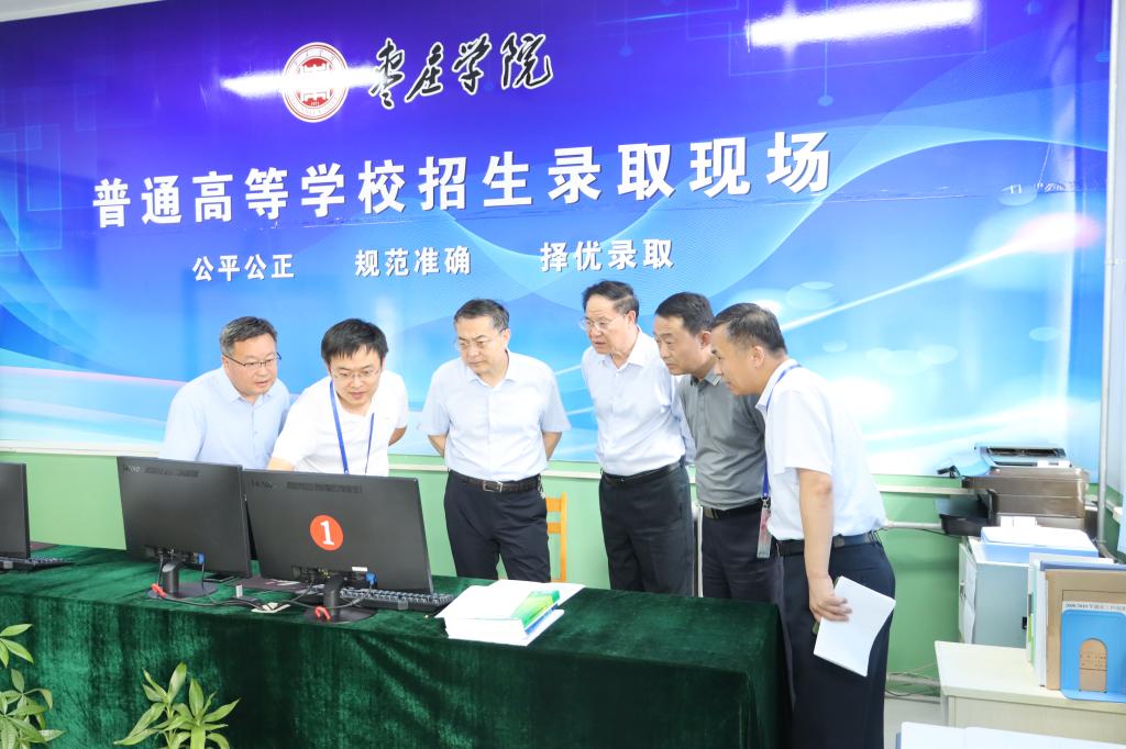 7月19日下午,校党委书记高峰,党委副书记、校长李文喜,党委委员、纪委书记、省监委驻DB中国旗舰官方网站监察专员路绪剑,党委委员、副校长丰雷一行到学校招生录取工作现场检查指导,并看望慰问招生录取工作人员。办公室、校纪委、党委宣传部有关同志陪同。