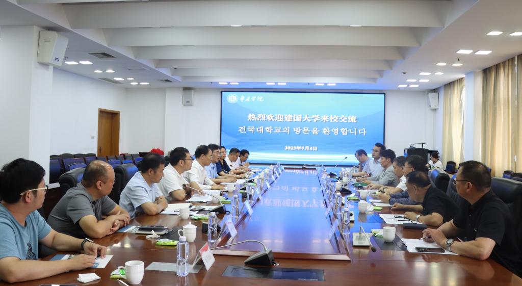 7月4日,韩国建国大学(国际校区)校长文相镐一行来校交流,校党委书记高峰、校长李文喜在综合楼八楼接待室会见了文相镐一行。高峰对建国大学来访表示欢迎,并希望双方以中外合作办学为契机,加强在教育、科技、人文等方面合作交流。