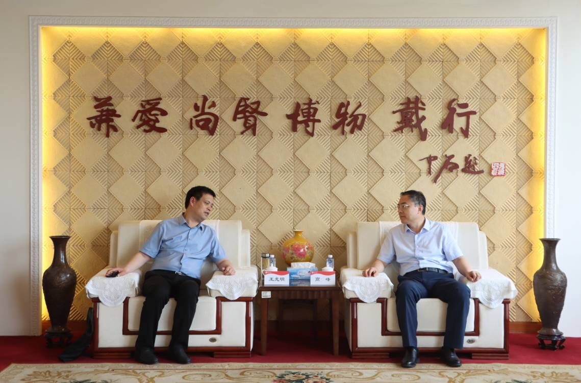 6月16日上午,枣庄市委教育工委常务副书记、市教育局党组书记、局长王光明一行3人来校交流访问,校党委书记高峰,校党委副书记、校长李文喜,校党委委员、副校长李目海在市中校区综合楼八楼接待室与王光明一行举行座谈交流,办公室负责同志陪同。