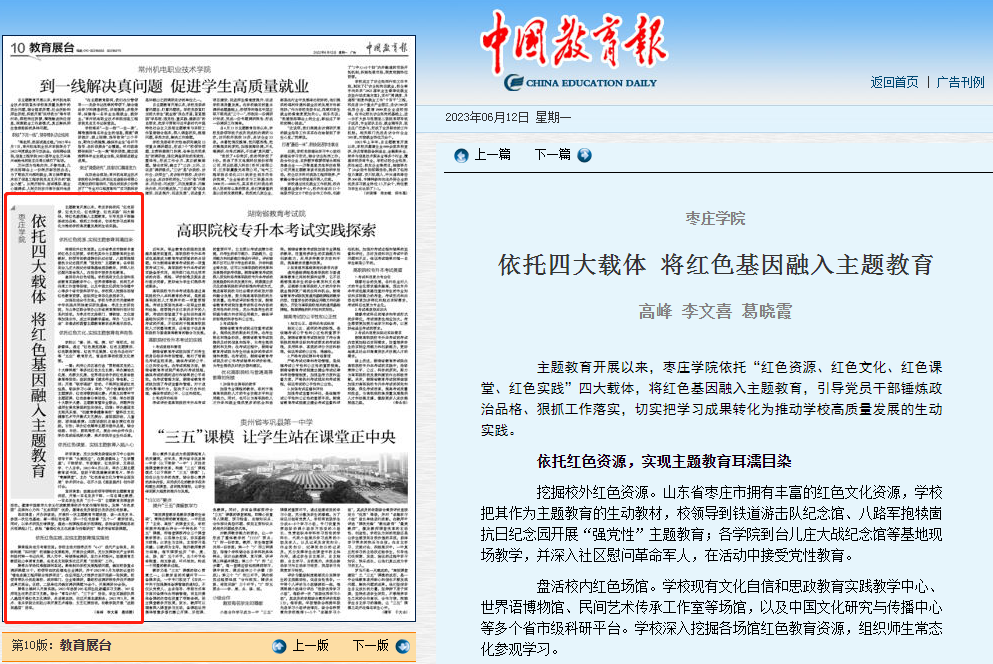 中国教育报刊发高峰、李文喜署名文章《DB中国旗舰官方网站依托四大载体 将红色基因融入主题教育》