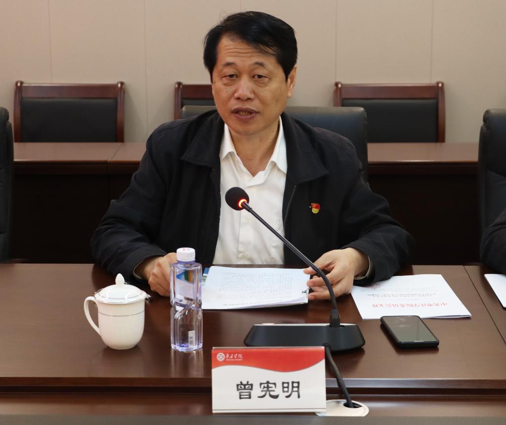 曾宪明首先代表学校汇报了主题教育开展情况,并就下一步工作打算进行简单介绍。他表示,自学校主题教育启动以来,在省委第二十五巡回指导组的具体指导下,学校党委精心谋划部署,认真组织学习,深入调查研究,全面检视问题,强化宣传引导,边学边查边改,扎实推进各项工作。一是严密部署,确保组织到位。学校成立党委主题教育领导小组,精心策划组织,严格推进落实,形成了上下联动、快速高效、全员参与的工作局面。二是结合实际,扎实推进主题教育开展。念好“四字诀”推动理论学习扎实起步,坚持“四个带头”推动调查研究提质增效,创新“四结合、四聚焦”高位推进检视整改,做好“十件实事”推动高质量发展见行见效。下一步学校将按照中央部署和省委要求,在巡回指导组指导下,加大统筹谋划推进,努力把开展主题教育激发出的干事热情和进取精神,转化为推动学校高质量发展的内生动力。