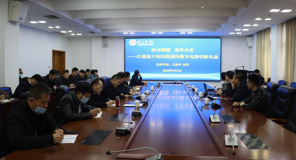 为更好落实国家“教育数字化战略行动”,进一步提升教师对于教育知识图谱的认知和应用能力,推动我校虚拟仿真基层教学组织建设,4月4日上午,我校特邀虚拟仿真实验教学创新联盟执行秘书长、重点领域教学资源建设项目管理办公室主任王宏宇,在综合楼三楼会议室作专题报告。我校党委副书记、校长李文喜出席报告会,学校办公室、教务处、实验管理中心、发展规划处、创新创业学院以及各教学单位分管教学工作负责人参加报告会。