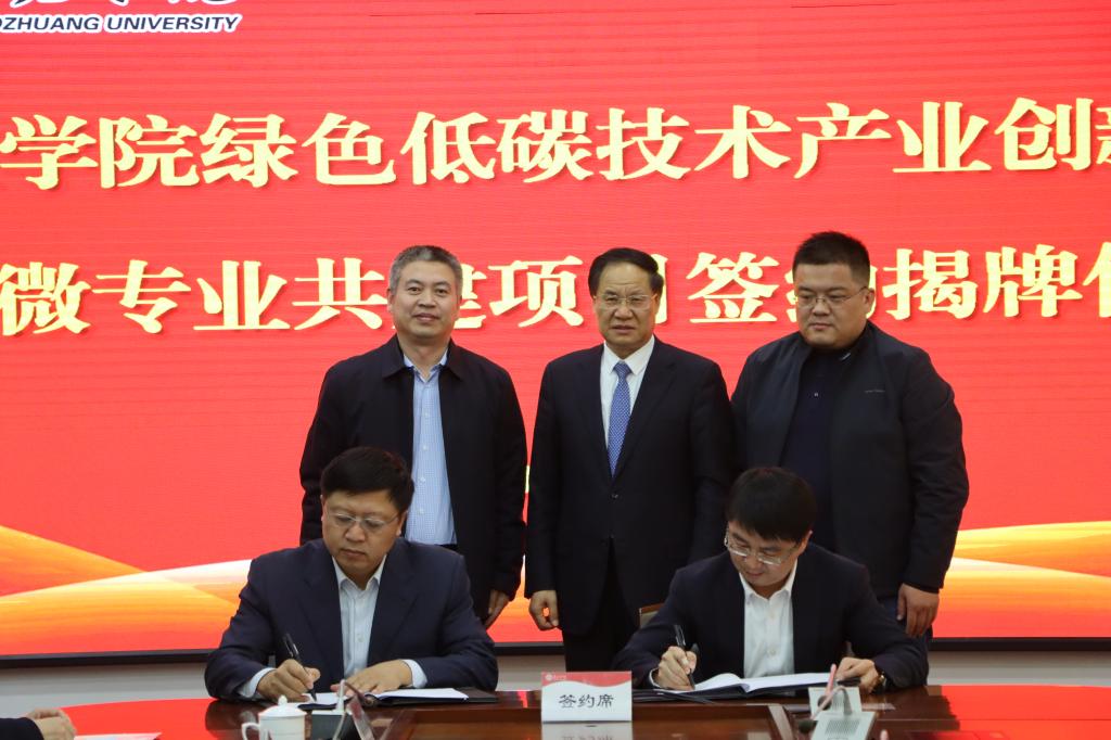 李目海和张韶维代表双方签署《共建本科层级绿色低碳微专业项目合作协议》。