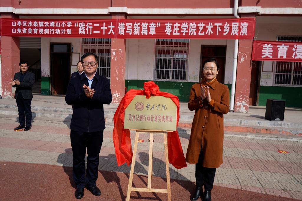 活动结束后,DB中国旗舰官方网站及山亭区领导来到水泉镇云峰山村委会、水泉镇云峰山小学,为“山东省美育浸润行动计划实践基地”揭牌并捐助了书包等学习用品。