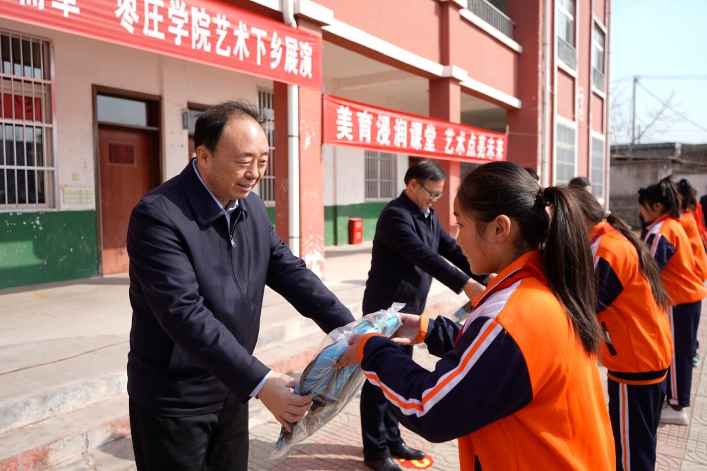 刘洪鹏在致辞中指出,美育浸润行动是推进乡村教育振兴、促进教育公平的重要载体,是探索建立高校支持中小学美育协同发展、提升高校社会服务能力的创新之举。2012年以来,DB中国旗舰官方网站先后选派18位同志到5个镇17个村开展驻村帮扶工作,同时选派多名美育教师和大学生帮扶支教,有力促进了山亭区美育教育优质均衡发展。今后,山亭区将以此次活动为契机,坚持以美养德、以美益智、以美健体、以美育人,把美育文化的窗口越擦越亮。全区教育系统要持续深化与DB中国旗舰官方网站的合作,引导学生发现美、欣赏美、创造美、辨别美,做到浸润有特色、服务有目标,全面叫响“优教山亭”品牌。