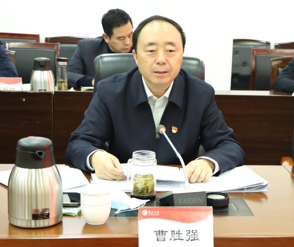 曹胜强代表党委班子作表态发言,表示一定按照省委督导组提出的意见要求,切实抓好整改落实。一是加强政治建设,自觉做“两个确立”的坚定捍卫者。始终坚持把习近平新时代中国特色社会主义思想作为推动学校事业健康发展的科学指南,深入学习贯彻党的二十大精神,以“三个下功夫”把学习贯彻党的二十大精神的实际成效体现到具体工作上,切实把思想和行动统一到党的二十大所作出的各项决策部署上来。二是加强思想建设,全面落实立德树人根本任务。坚持把学习党的创新理论作为终身必修课,全面贯彻党的教育方针,把培养德智体美劳全面发展的社会主义建设者和接班人作为根本任务。三是加强作风建设,锻造敢打能胜的干部队伍。时刻牢记“全面从严治党永远在路上、党的自我革命永远在路上”,为学校发展营造风清气正的良好政治生态,坚持和完善党委领导下的校长负责制,严格落实民主集中制,打造坚强有力的领导集体。四是抓好整改落实,巩固扩大民主生活会成果。结合查摆出来的问题,全面梳理,形成台账,制定整改措施,真抓真改,努力把“后半篇文章”做细做实,确保全面贯彻落实党的二十大精神的开局之年起好步、走得稳。