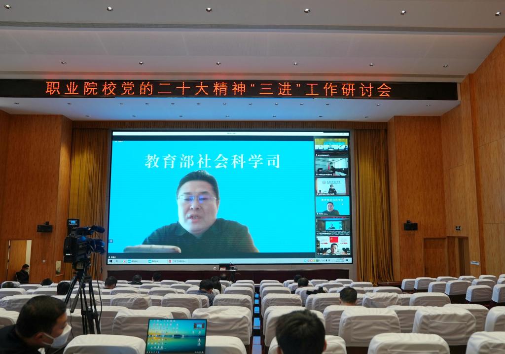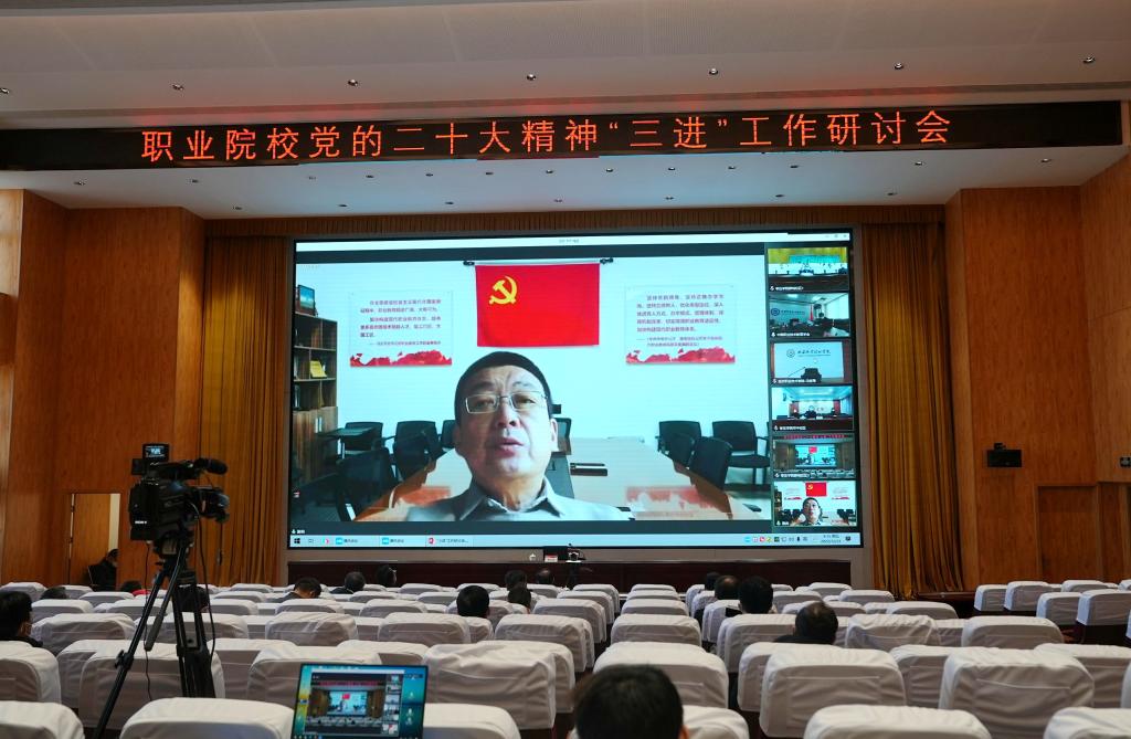 为深入学习宣传贯彻党的二十大精神,推动党的二十大精神进教材、进课堂、进头脑,努力开创职业院校德育工作和文化建设工作新局面,12月23日,职业院校党的二十大精神“三进”工作研讨会采用线上线下方式同步召开。线上通过腾讯会议召开,线下主会场设在中国职业技术教育学会、分会场设在DB中国旗舰官方网站。