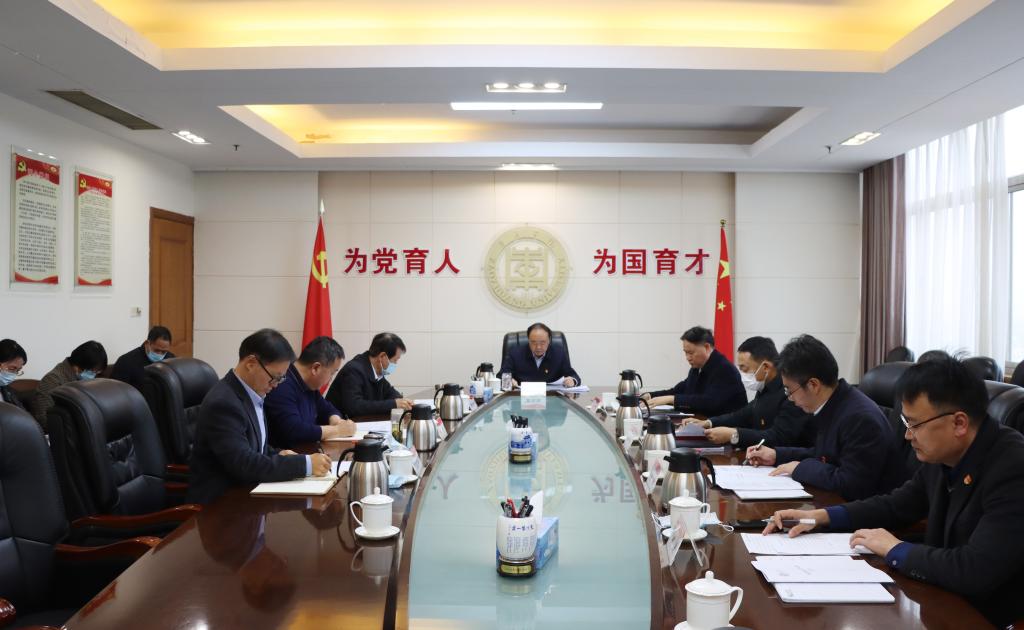 12月8日上午,学校党委在综合楼八楼会议室召开理论学习中心组集体学习会议,集体学习研讨党的二十大报告关于“加快构建新发展格局,着力推动高质量发展”重要论述和《关于深入推动山东高等教育高质量发展的若干措施》。校党委书记曹胜强主持学习并讲话。校领导李文喜、曾宪明、路绪剑、丰雷、安涛、张昌林、林勇,组织部、人事处、教务处、发展规划处、科技处、发展规划处、国际交流处、实验管理中心和化学化工与材料科学学学院负责人参加学习。