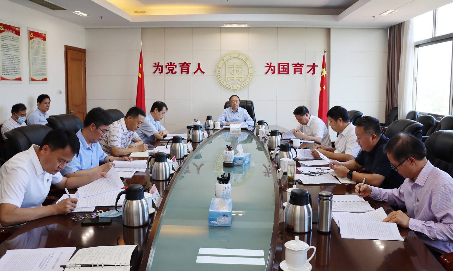 9月16日上午,校党委在综合楼八楼会议室组织开展专题学习,学习习近平总书记中央全面深化改革委员会第二十七次会议讲话精神,同时结合学校实际,研究贯彻落实意见。校党委书记曹胜强主持学习并讲话,校领导李文喜、曾宪明、李目海、路绪剑、丰雷、安涛、张昌林、林勇,办公室、科技处、后勤服务处、光电工程学院、化学化工与材料科学学院和食品科学与制药工程学院等部门负责人参加学习。