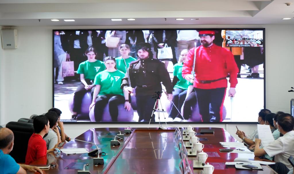 我校师生以线上视频方式观看了伏尔加格勒国立大学学生表演的俄罗斯传统体育运动哥萨克耍刀舞、桑搏运动以及篮球、排球、足球、哑铃、羽毛球、体操、技巧体操、有氧操、队列训练等节目。伏尔加格勒国立大学学生伴随着我校和吉林大学提供的教学展示视频,表演了中国传统体育运动健身气功、太极拳和中国舞。开幕式还展播了我校推送的DB中国旗舰官方网站龙舟队宣传视频。