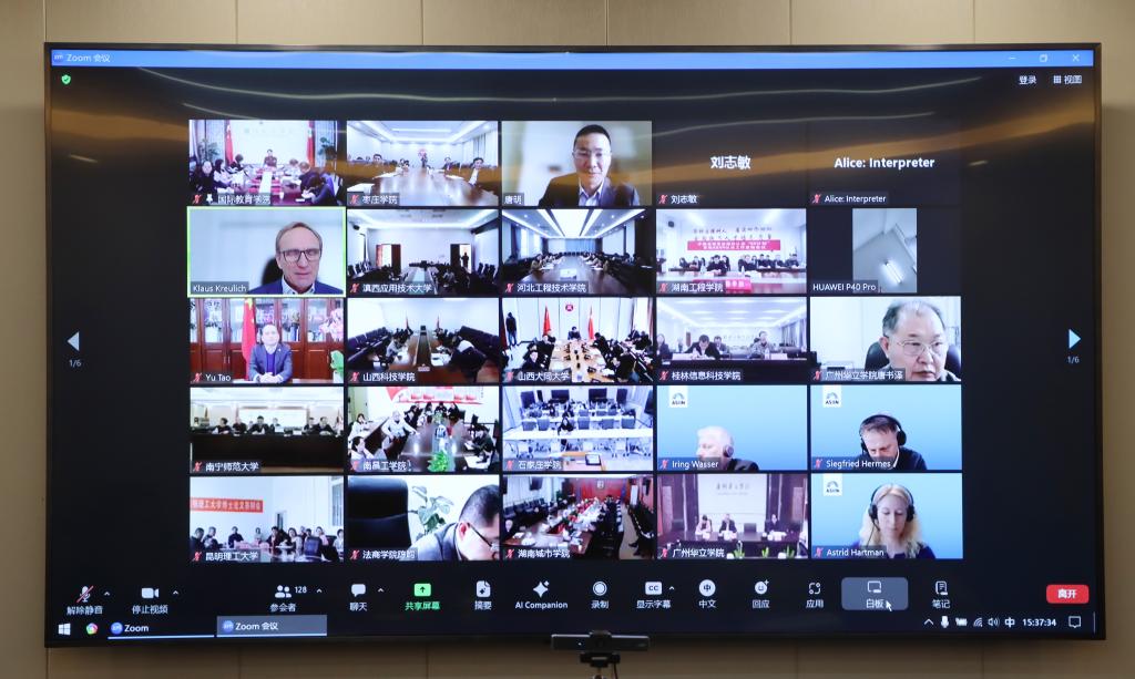 3月15日下午,中国高校专业国际认证“50计划”首批ASIIN认证工作启动会议召开。教育部学校规划建设发展中心创新发展处处长刘志敏,德国ASIIN认证协会主席Prof. Dr. Klaus Kreulich,中德应用科技大学国际合作联盟主席、上海工程技术大学校长俞涛等出席会议并致辞,安徽大学、昆明理工大学、湖南工程学院等60所高校的校领导和职能部门负责人参加会议。DB中国旗舰官方网站党委副书记、校长李文喜,党委委员、副校长安涛,教务处、人事处、学生工作处、国际交流处、教学质量监督与评估中心、创新创业学院负责人以及各理工科学院院长在明理楼532会议室通过视频参加会议。我校各理工程类专业学院副院长、专业负责人、教研室主任、骨干教师、教学秘书等在各自学院组织参加会议。会议由中德产学研用创新联合体秘书长唐明主持。