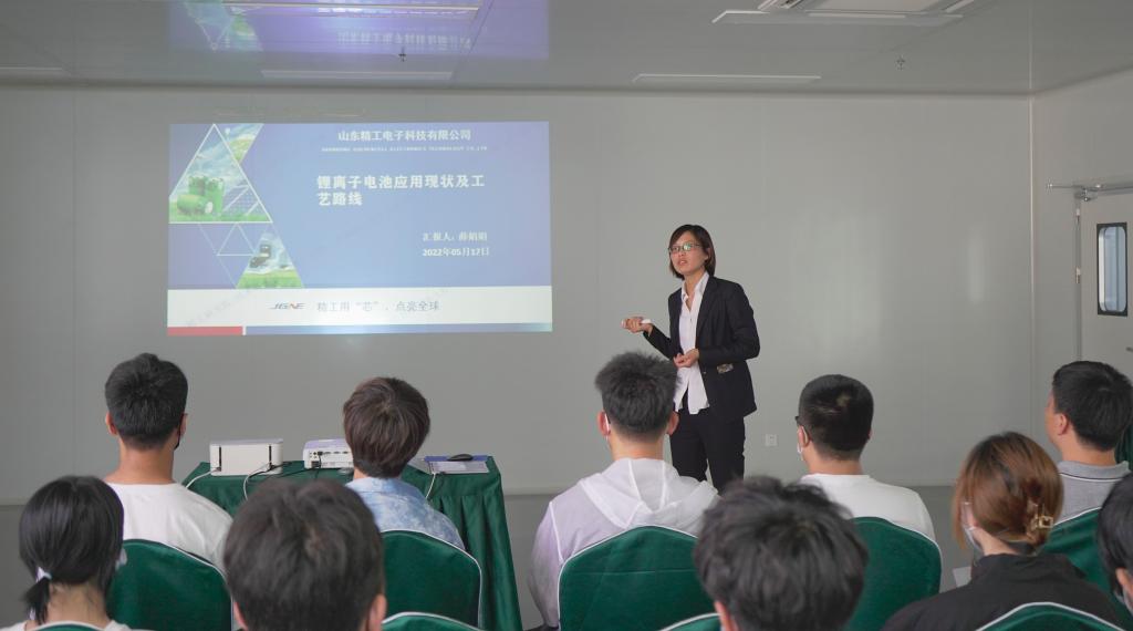 同时,“精工大讲堂”第一讲正式开讲。锂电产业学院特聘产业教授、教授级高工、山东精工电子科技有限公司技术部经理薛娟娟以《锂离子电池应用现状及工艺路线》为题,为同学们作讲座。她从锂离子电池的结构、应用领域、研发现状、技术路线等方面深入浅出地向学生们介绍了锂电产业在全球产业及经济发展中的重要作用,并希望同学们能在锂电产业学院“精工实验班”的学习过程中,得到专业知识与实践技能的双提升。讲座结束后,薛经理与同学们进行了互动交流,并带领同学们参观了企业研发中心和生产线。