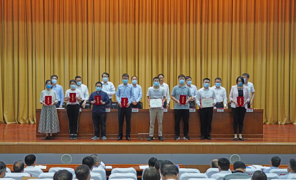 大会现场对受表彰的科研工作先进单位、科研工作优秀组织单位代表,学校重点建设学科带头人及2019-2020年高质量科研成果一等奖获得者进行了颁奖。