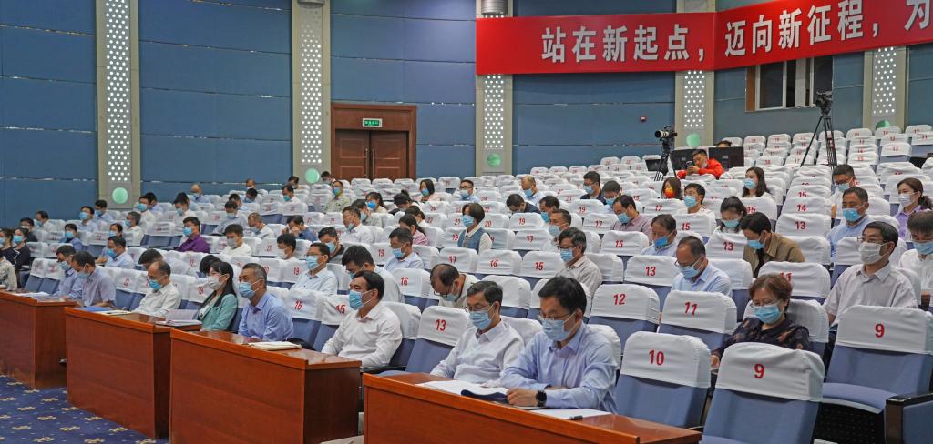 为深入贯彻习近平总书记关于科技创新工作的重要论述精神,扎实推进学校“科技强校”战略实施,进一步激发全校师生员工科技创新热情,促进学校学科建设及科研工作高质量发展,5月6日上午,我校在市中校区综合楼学术报告厅召开第七次科研工作大会,对学校第六次科研工作大会以来取得的成绩进行总结,对下一步科研及学科建设工作进行安排部署。本次大会的主题是“重创新、促学风,强特色、上水平”。校领导班子成员、相关职能部门负责人、二级学院(教学部)和科研机构负责人、教授和青年博士代表参加主会场会议,相关部门和学院设分会场同步在线收看大会实况。会议由校党委副书记、校长李文喜主持。