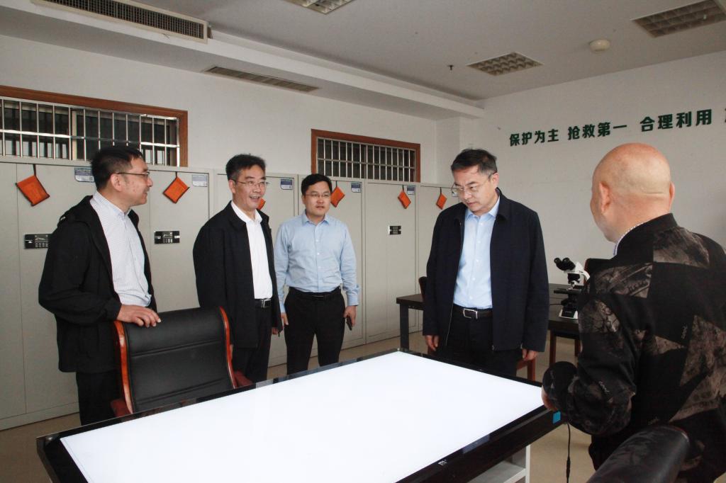 高峰一行先后到世界语博物馆游客服务中心、博物馆临时展厅、文物修复室和国际世界语协会亚洲图书馆进行实地调研。博物馆建设研究专家孙明孝汇报了博物馆定级工作进度及博物馆修整、文创产品开发、各科室筹备等情况。在国际世界语协会亚洲图书馆,高峰详细了解了图书的种类、数量以及馆藏文物定级工作情况。