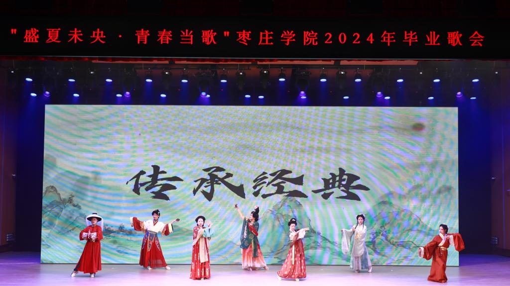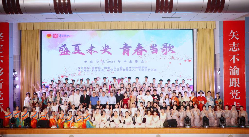 本次歌会由宣传部、学生工作处、团委、关工委、音乐与舞蹈学院主办。歌会分为《青春·骊歌》《盛夏·未央》《当歌·远航》三个篇章,以旗帜鲜明的政治引领及枣院学子成长成才之路为主线,通过乐团、电声乐队、歌伴舞、情景演唱、朗诵、小品、剧情舞、合唱等丰富多样的表现形式,结合服装走秀、礼仪风采等展示呈现了立体、多元的现场效果。