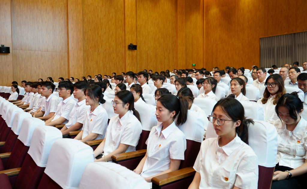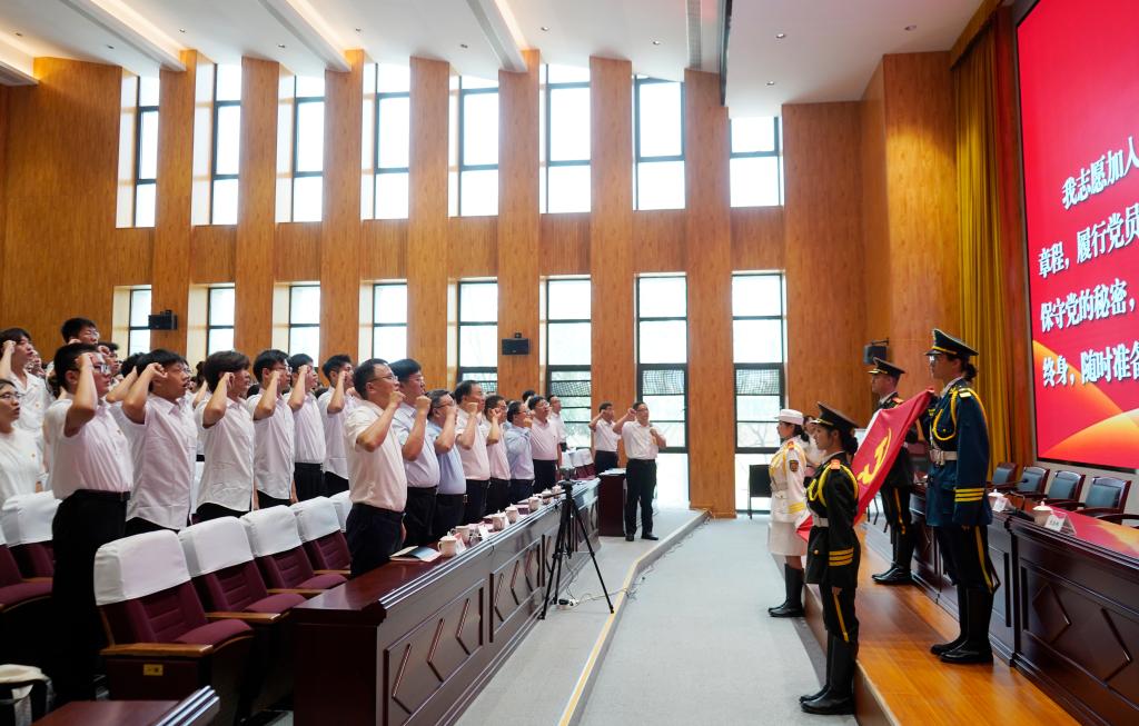 会议在雄壮的国歌中拉开帷幕,新党员进行入党宣誓,其他党员重温入党誓词。铿锵有力的宣誓表达了党员对党的忠诚与热爱,以及听党话、跟党走的坚定决心。