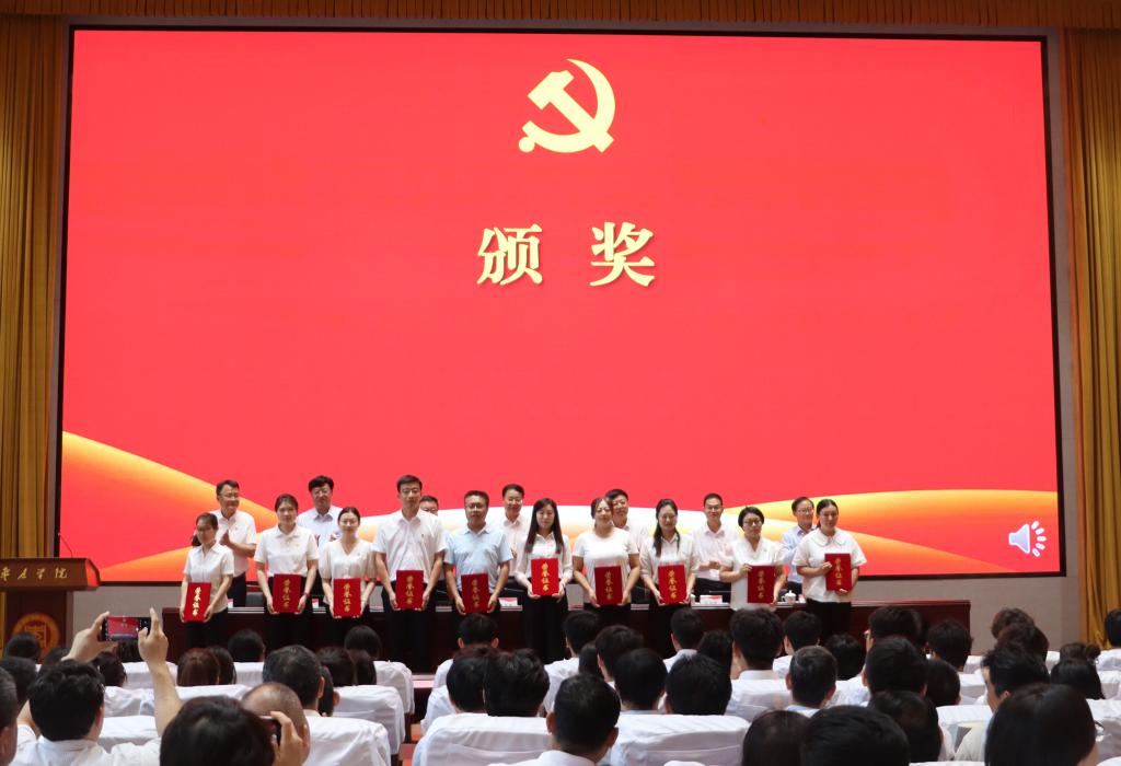 校党委委员、副校长丰雷宣读了《第四批“全国党建工作样板支部”培育创建单位名单》《第三批“全省党建工作标杆院系”培育创建单位名单》《关于表彰先进基层党组织、优秀党务工作者、优秀共产党员的决定》《关于表彰2022-2023年度思想政治工作先进集体、先进个人的决定》,校领导共同为受表彰的集体和个人颁奖。