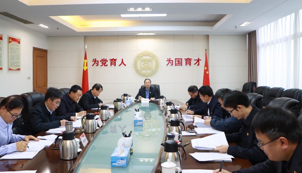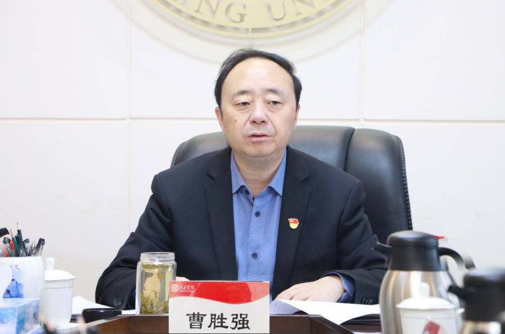 曹胜强强调,习近平总书记重要讲话精神为我们在立德树人工作中高举伟大旗帜指明了方向,提供了根本遵循。习近平总书记在讲话中指出,“党的百年奋斗历程告诉我们,党和人民事业能不能沿着正确方向前进,取决于我们能否准确认识和把握社会主要矛盾、确定中心任务。”当前学校发展面临的主要矛盾和中心任务就是提升办学层次,加快推进学校硕士点立项建设。学校各级各部门必须紧密围绕中心任务,在人才引进和科研立项等重点工作中,充分利用各种资源,同枣庄市共享人才、科研等平台,积极谋划,寻求破解主要矛盾的思路和办法,力争在2022年攻坚克难中取得突破。