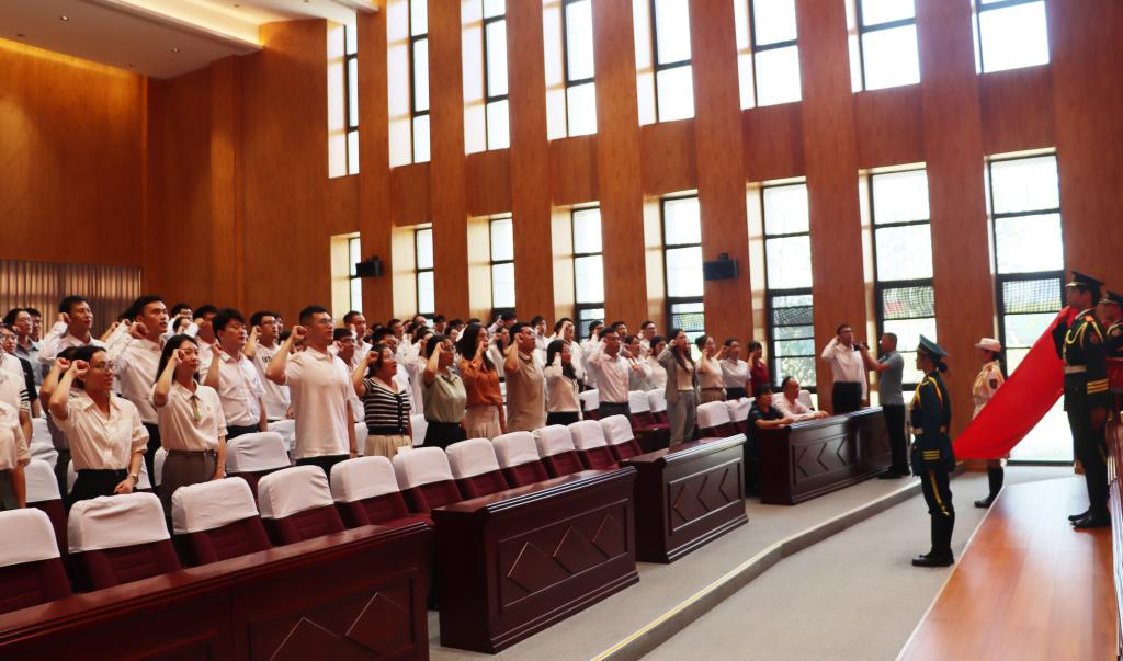 会上,首先进行2024年新教师入职宣誓。城市与建筑工程学院教师纪翔领誓,全体新入职教师紧握右拳,面向国旗,庄严宣誓,立下“为党育人、为国育才”的铿锵誓言。