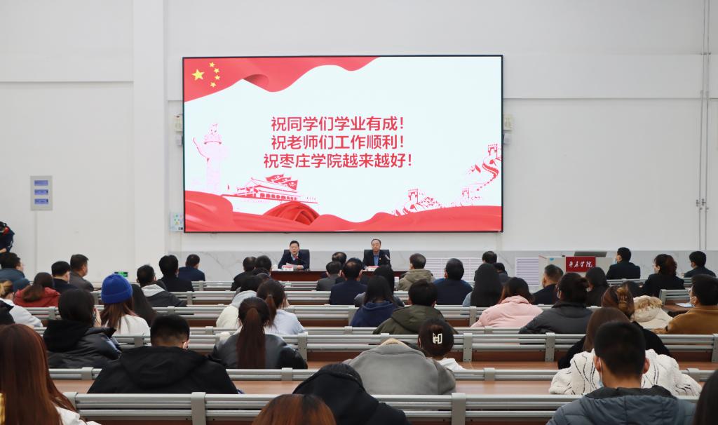 12月16日下午,枣庄市委书记、市人大常委会主任陈平莅临新城校区,为我校师生作党的十九届六中全会精神宣讲报告。校党委书记曹胜强主持报告会,我校新城校区处科级干部以及师生代表200余人在增信楼报告厅聆听报告。市中校区在综合楼学术报告厅设分会场,近300名师生以视频直播形式收听收看。