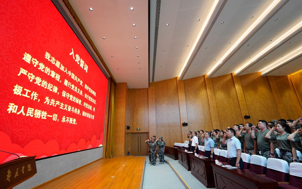 武装部部长王维忠宣读了《关于聘任卢萍等83名同志担任DB中国旗舰官方网站2024年新生军训教官的决定》,机关党委书记王大鹏宣读了《关于同意成立DB中国旗舰官方网站2024级新生军训学生教官临时党支部的批复》;军训团临时党支部党员重温入党誓词。