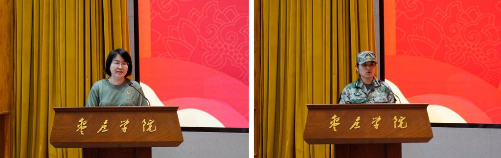 文学院党委副书记华莹、军训教官代表卢萍分别作表态发言。