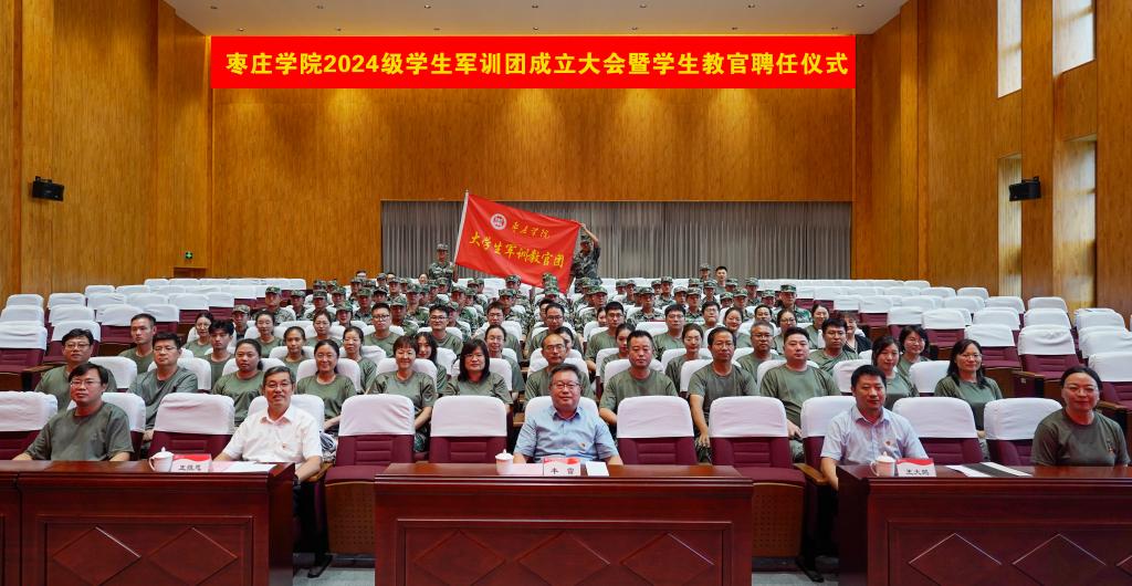 9月12日下午,我校在薛城校区崇德楼报告厅举行2024级学生军训团成立大会暨学生教官聘任仪式,校党委委员、副校长丰雷出席仪式并讲话。学校武装部负责同志、各二级学院党委副书记、全体2024级新生教官参加仪式。聘任仪式由校武装部副部长张昆主持。