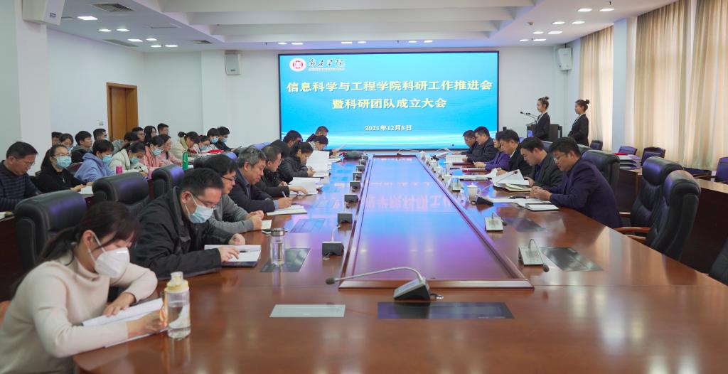 为贯彻落实学校“三步走”发展战略和推进学校“十四五”科研发展规划,12月8日下午,信息科学与工程学院在综合楼三楼会议室举行科研工作推进会暨科研团队成立大会。校党委委员、副校长李目海出席会议并讲话。科技处处长伊文涛、社会科学处处长何芳,信息科学与工程学院党总支书记姬广华、院长闫昕、副院长杨斌、全体教师和学生代表参加会议。会议由姬广华主持。