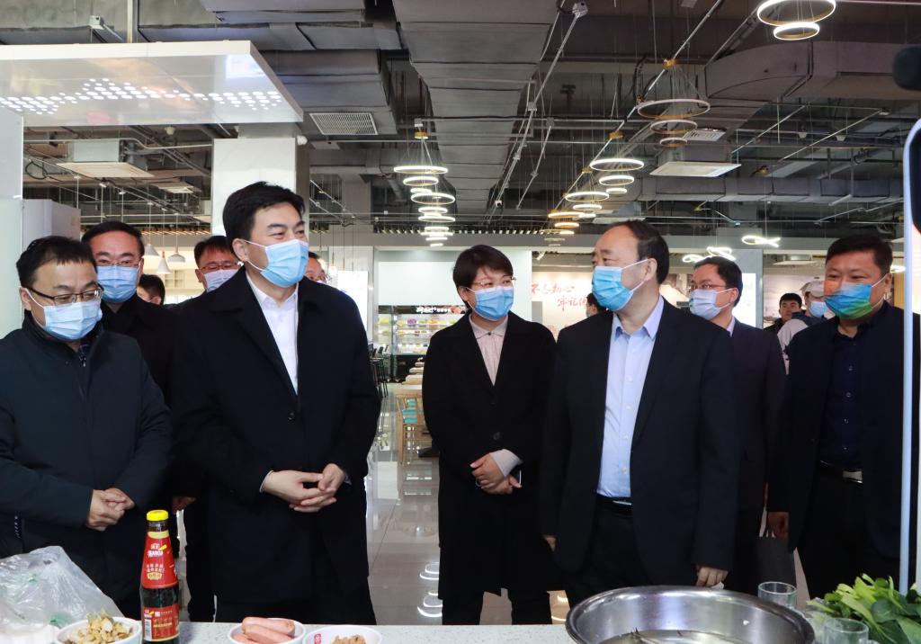接着,刘天东一行深入莲花餐厅调研,对温馨时尚的就餐环境、丰富多样的菜品给予好评。在餐厅一楼“妈妈来了”公益厨房,领导们与备好食材、正在准备做饭的同学们亲切交谈,认为青年学生利用课余时间走进公益厨房练就一两道拿手饭菜,在父母来校探望时为他们亲自做上一道“感恩餐”,不仅让学生在劳动教育中学会感恩,也收获了成长与快乐。