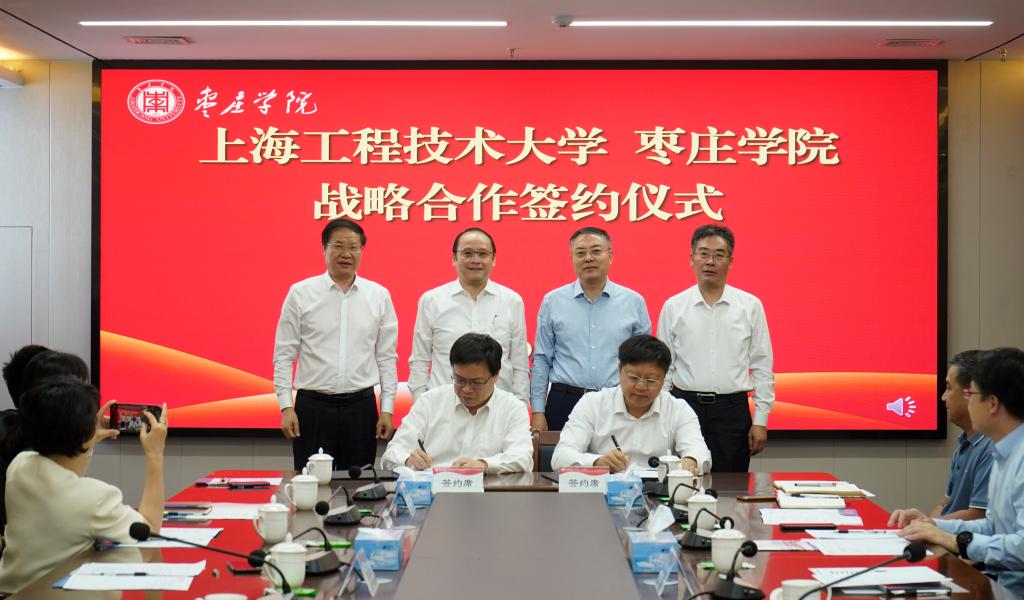 10月15日,我校与上海工程技术大学战略合作签约仪式在薛城校区明理楼519会议室举行。校党委书记高峰,党委副书记、校长李文喜,党委委员、副校长李目海、安涛,上海工程技术大学党委副书记、校长俞涛,党委常委、副校长夏春明,中德产学研用创新联合体秘书长、上海交通大学德国中心副主任唐明出席签约仪式。会议由李文喜主持。