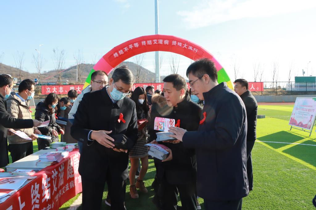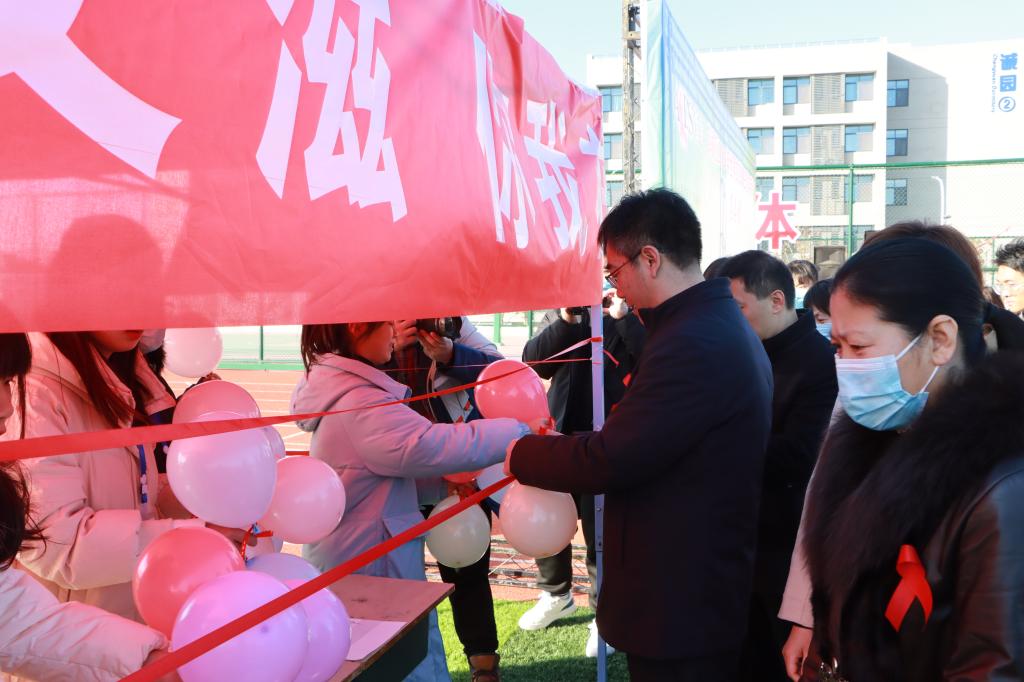 12月1日上午,我校“世界艾滋病日”主题宣传教育活动在新城校区阳光体育场举行。校党委委员、副校长安涛到现场进行指导。枣庄市卫生健康委、枣庄市妇女联合会、枣庄市疾病预防控制中心、薛城区人民政府等相关单位共同参与本次活动。