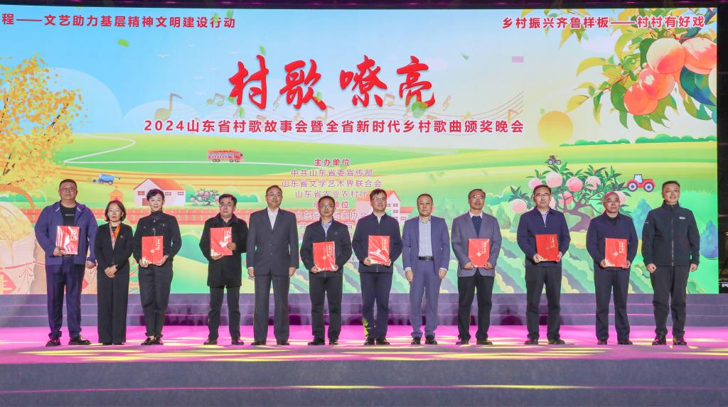 10月19日,村歌嘹亮·2024山东省村歌故事会暨全省新时代乡村歌曲颁奖晚会在泰安市肥城市民中心举行。本次活动由中共山东省委宣传部、省文联、省农业农村厅主办,省音乐家协会等承办。省委宣传部二级巡视员张景宗,省文联党组书记、副主席何思清,省文联党组成员、副主席马述兴,省农业农村厅乡村振兴督查专员毕海昕,省委社会工作部山东省志愿服务指导中心主任刘晓明及泰安市有关领导,枣庄市文联党组书记、主席李景龙,DB中国旗舰官方网站音乐与舞蹈学院党委书记、枣庄市音乐家协会主席李永等出席活动。枣庄市荣获“村歌嘹亮·2024山东省新时代乡村歌曲创作征集展演活动”优秀组织奖。DB中国旗舰官方网站作为全省两所高校之一,参加颁奖晚会演出活动。