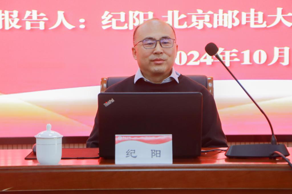 10月25日下午,北京邮电大学博士生导师纪阳教授应邀来校作学术报告。报告在薛城校区明理楼113会议室举行。校党委书记高峰出席报告会。社会科学处、自然国学研究院负责同志以及二级学院师生代表参加报告会。